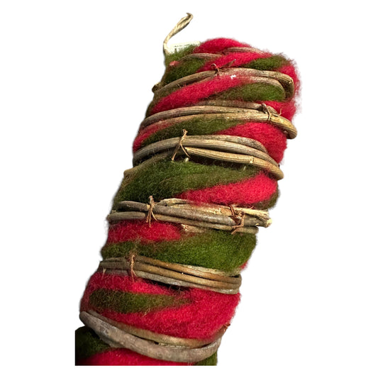 Julehjerte i pil og ulltråd.