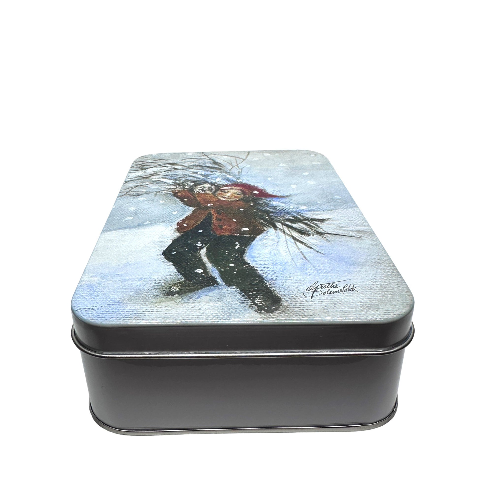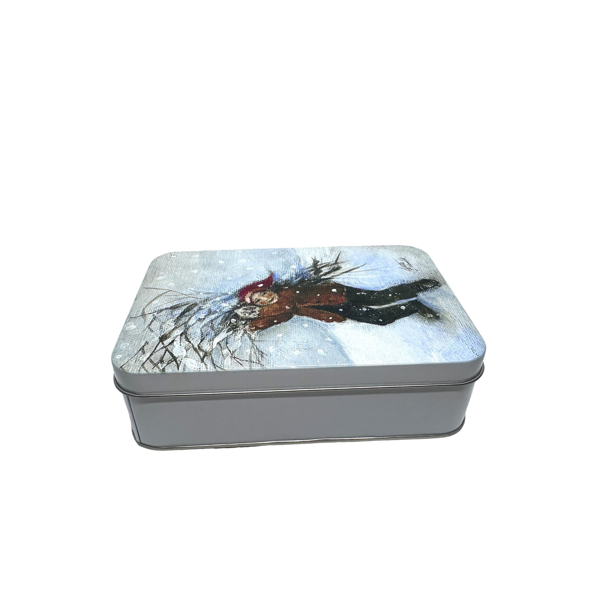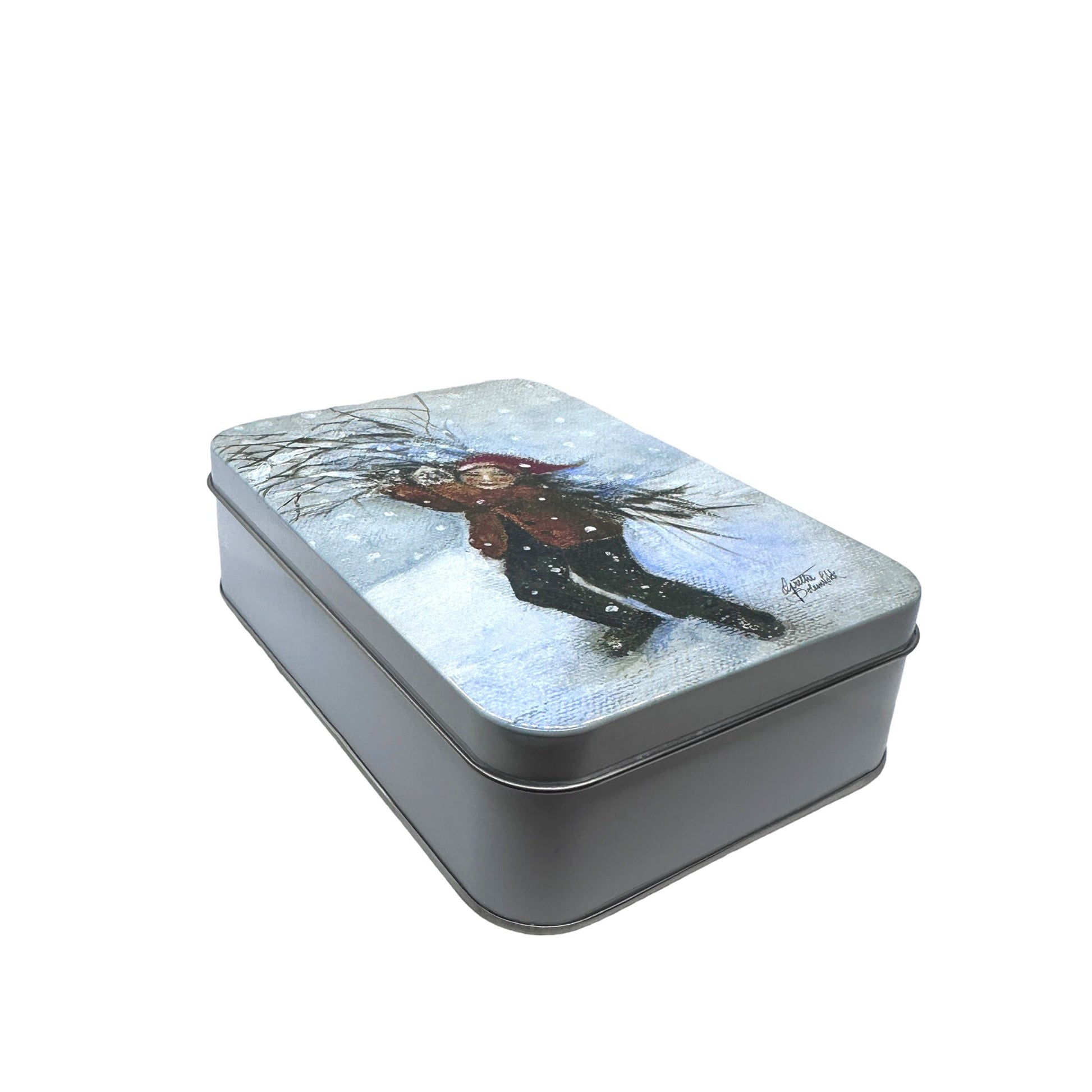 Rektangulær boks i metall som egner seg godt til julens hjemmelagde julekaker eller til å oppbevare årets julekort <3