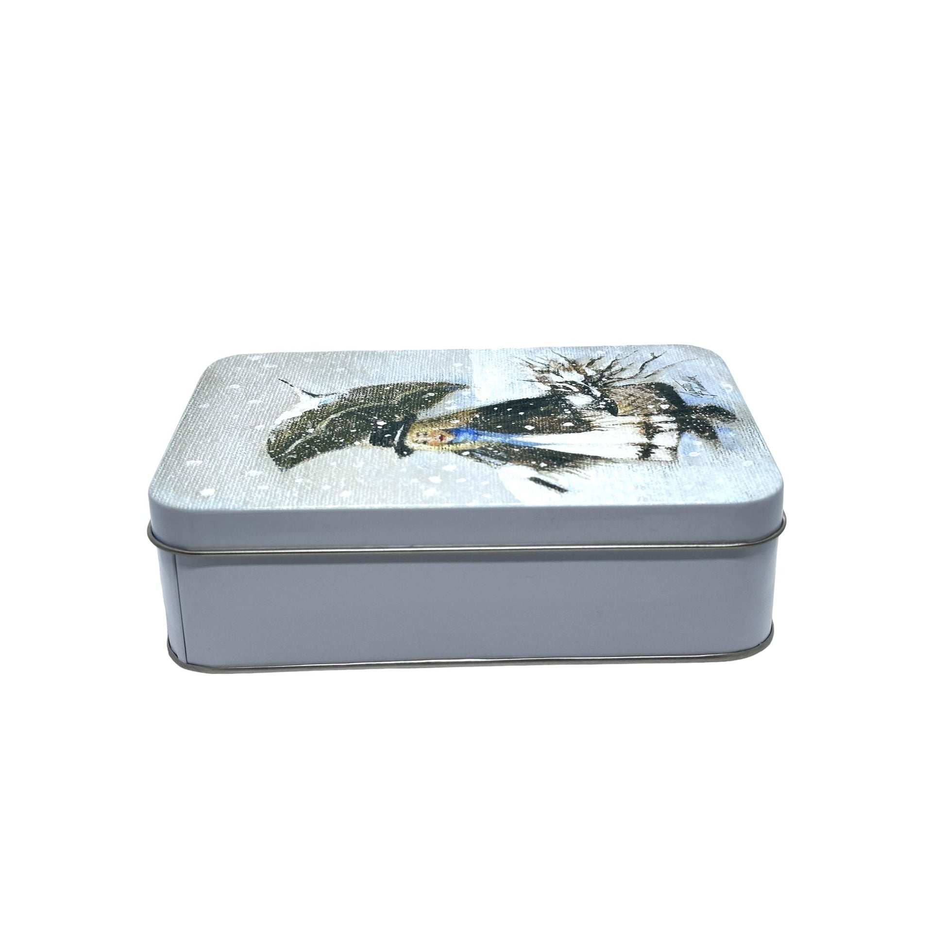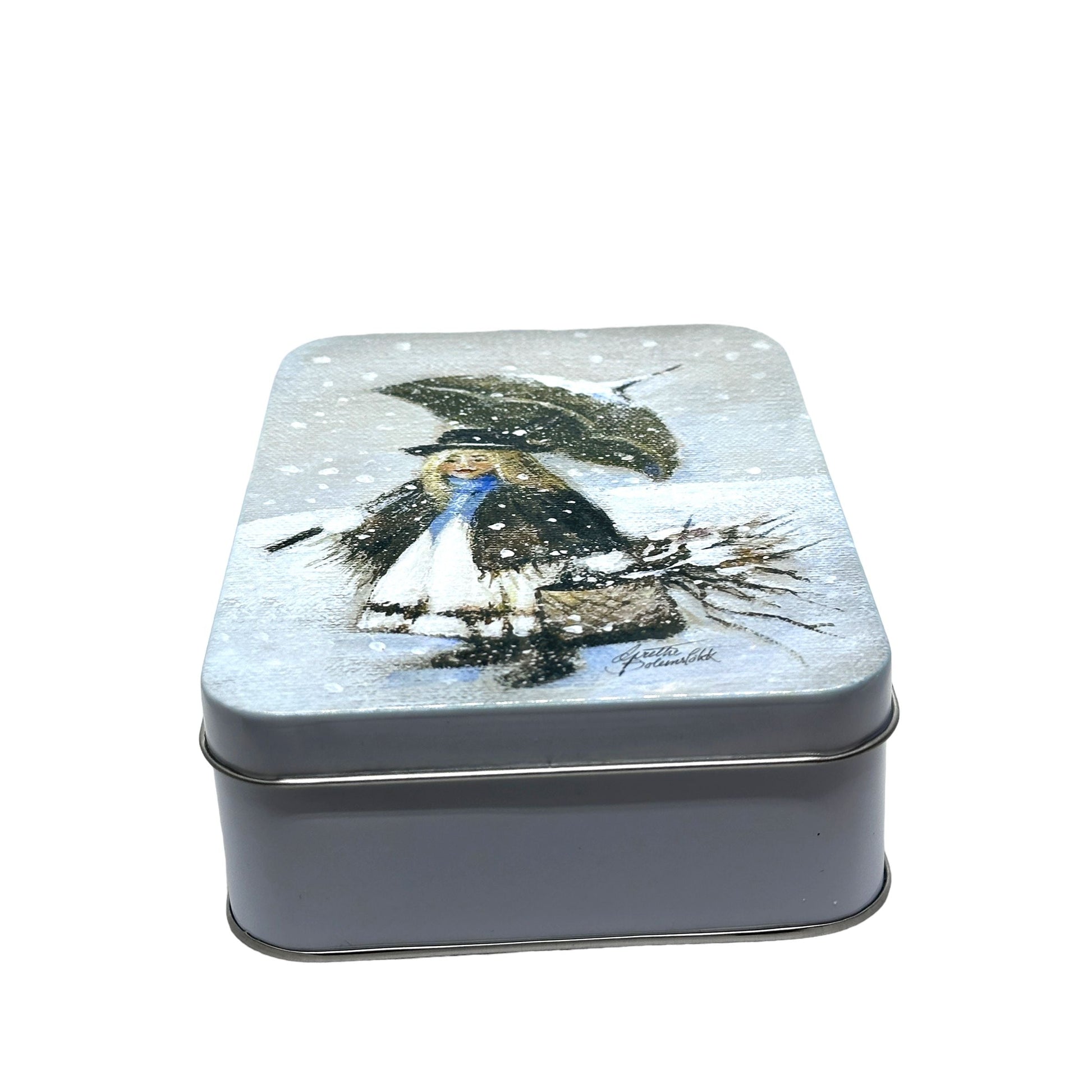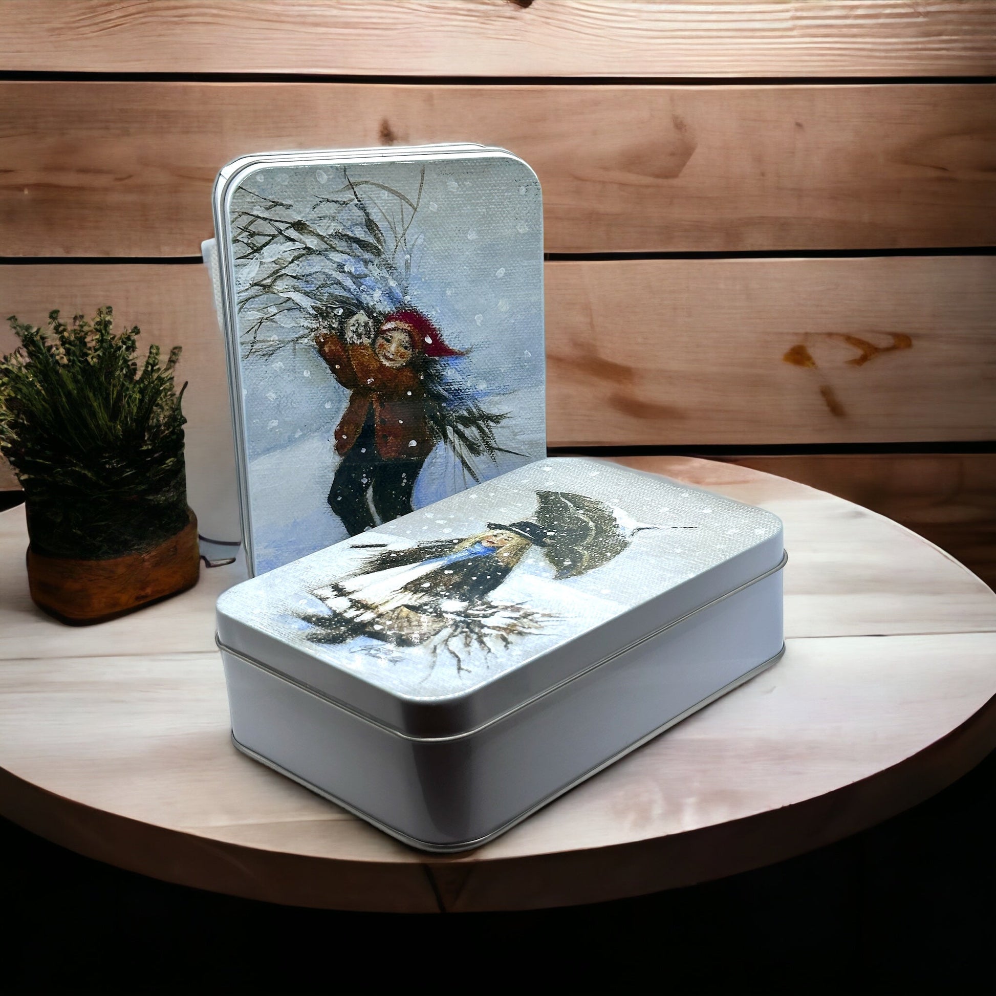 Rektangulær boks i metall som egner seg godt til julens hjemmelagde julekaker eller til å oppbevare årets julekort <3