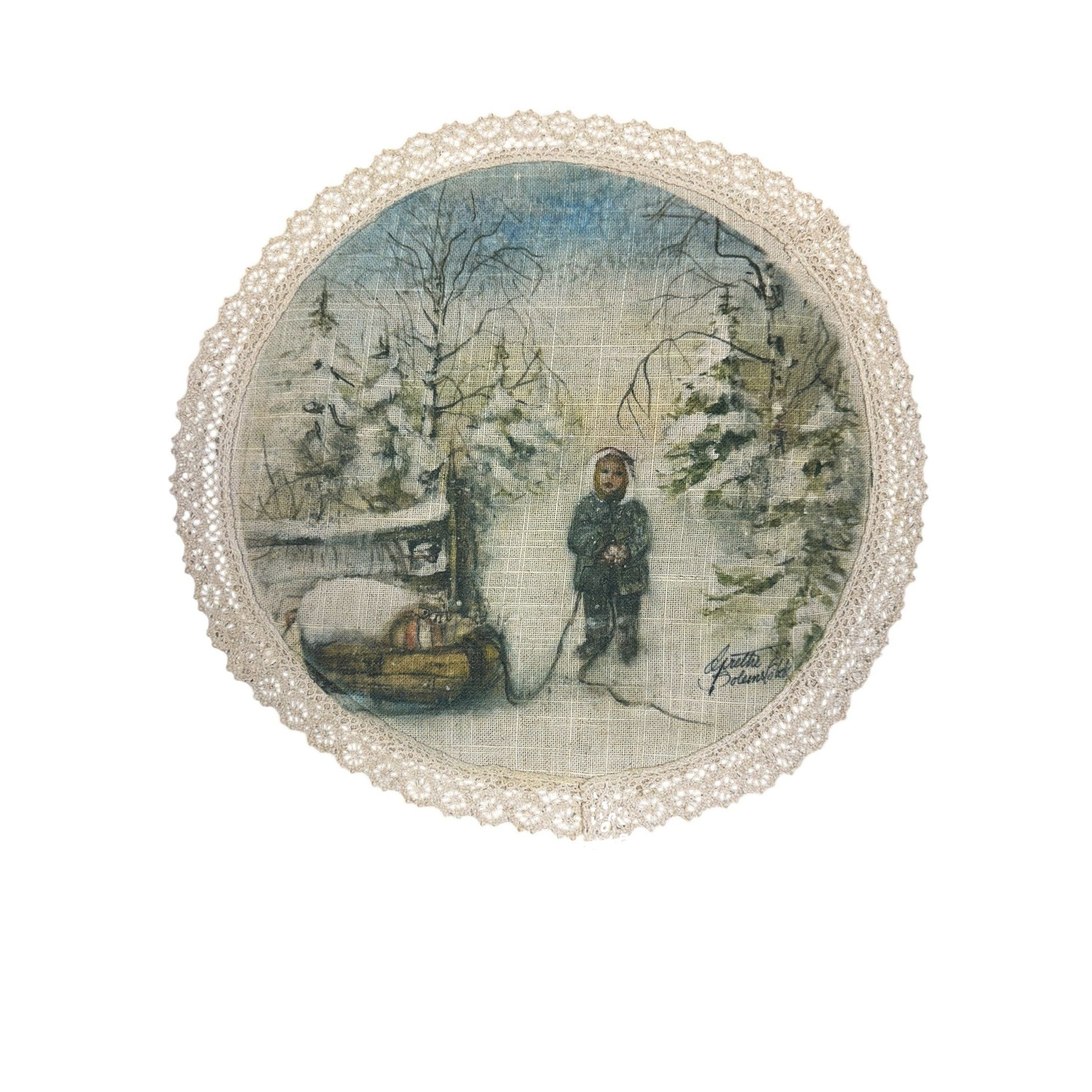 La vinterens vakre stillhet fylle hjemmet ditt med denne sjarmerende brikken fra "Blåtimen"-serien, med motiv fra Grethe Solemsløkk. Den runde brikken på 30 cm i diameter, dekorert med delikat blondekant, er perfekt til å gi frokostbordet et snev av vintermagi. Brikken kan enten brukes som en liten duk eller i en brødkurv, og bringer med seg en følelse av de rolige morgenstundene under blåtimen – et øyeblikk hvor alt hviler i myk blått lys.