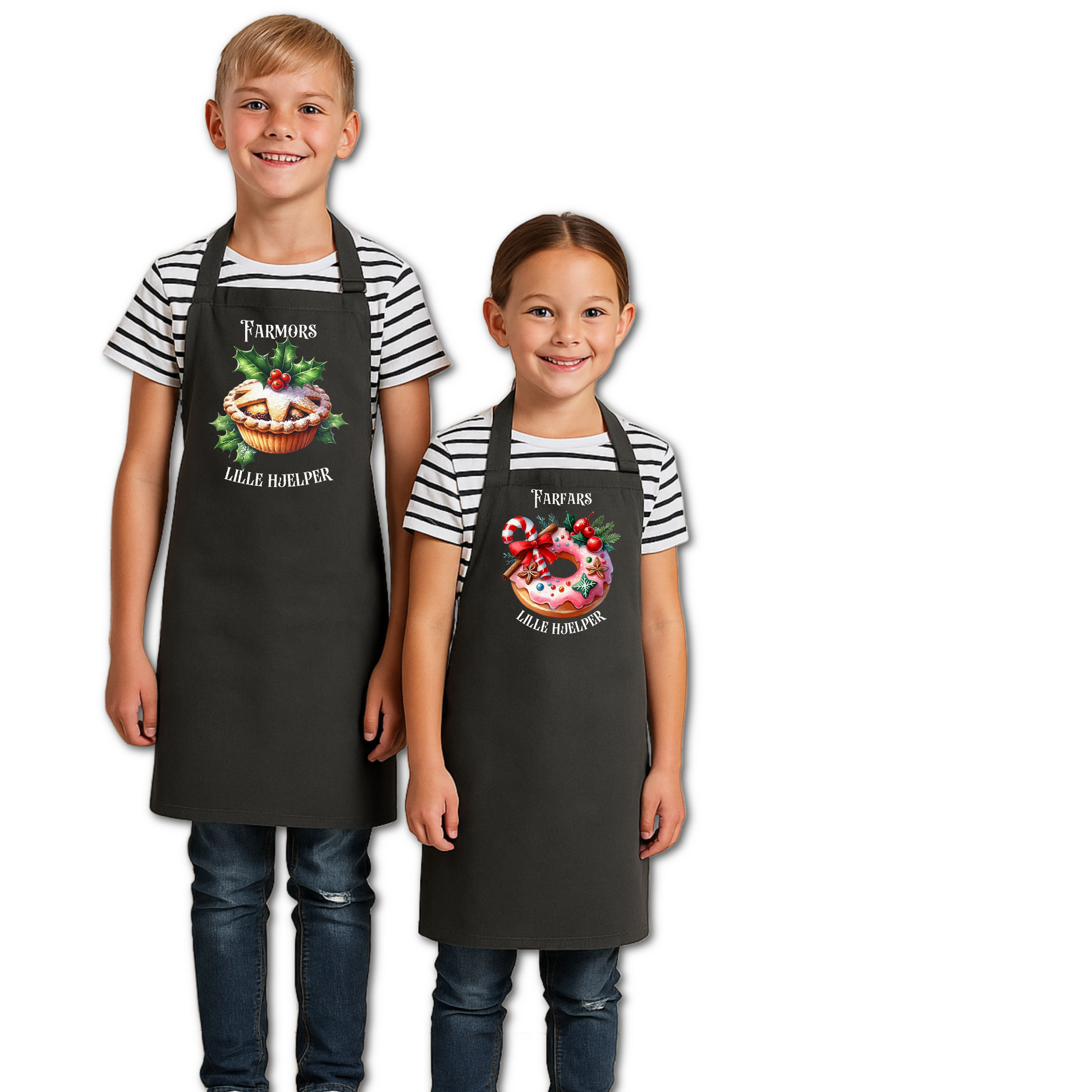 Fargerike og solide forklær til de minste. Justerbart nakkebånd med utløsende barnesikring.