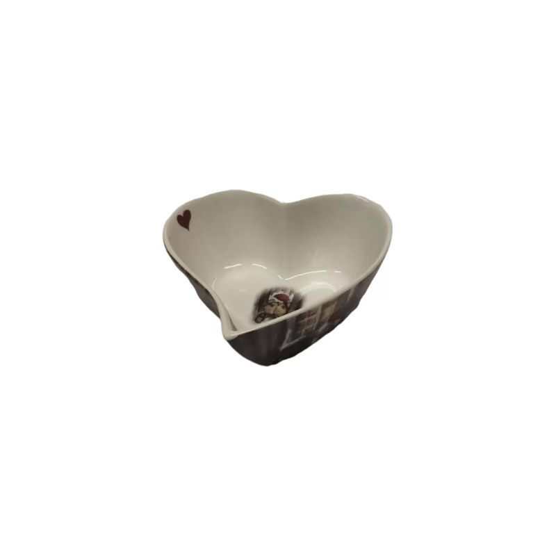 La hjertevarme og nostalgisk glede smelte sammen i denne unike hjerteskålen, vakkert utsmykket med et sjarmerende nisse-motiv som tar deg tilbake til barndommens mest magiske juleminner. Denne skålen er ikke bare et praktisk kjøkkenredskap; den er et kunstverk som gir deg følelsen av at julenissens verksted har funnet veien rett inn i ditt hjem.