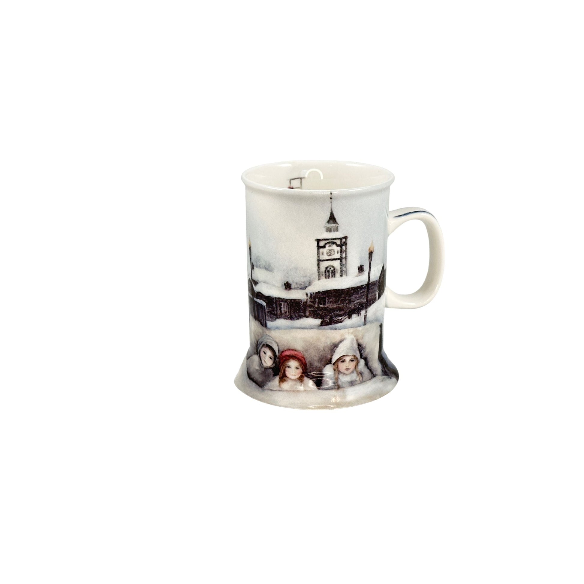 Krus med motivet "Barn i kanefart" fra serien Vinterbarn.