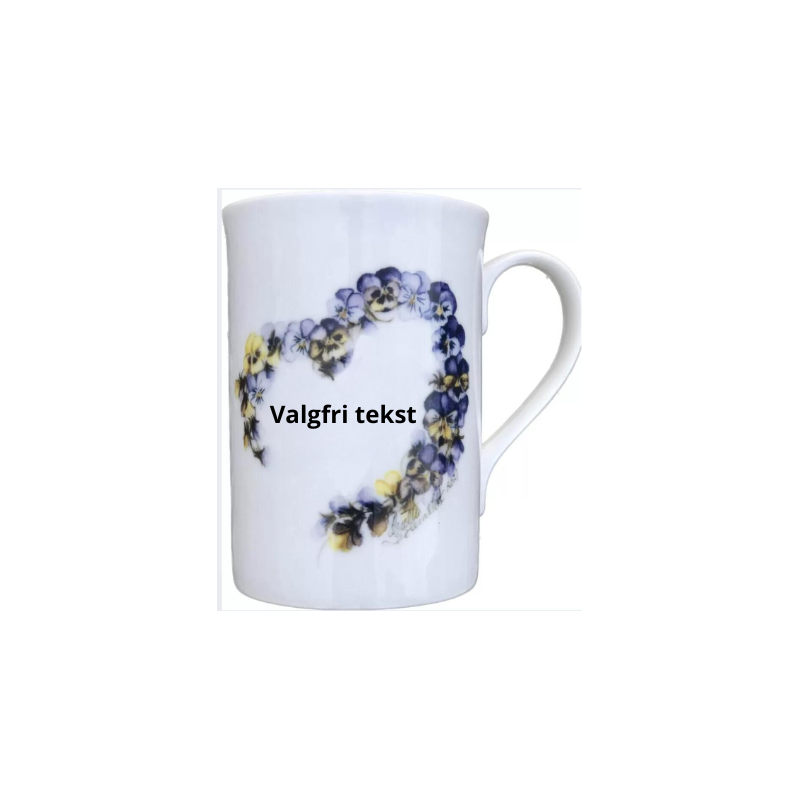 Motivet av stemorblomster er nøye utformet for å fange deres delikate skjønnhet, med myke kronblader og livlige farger. Den gir en følelse av ro og naturlig eleganse til kruset. Den tomme plassen i midten av blomstermotivet er et blankt lerret hvor du kan legge til din egen personlige tekst.