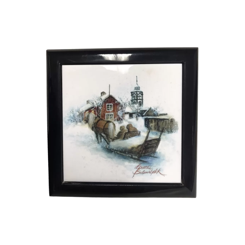Sortmalt med hvit fløyel på innsiden, lekkert dekorert med et av Grethes fineste vintermotiver.